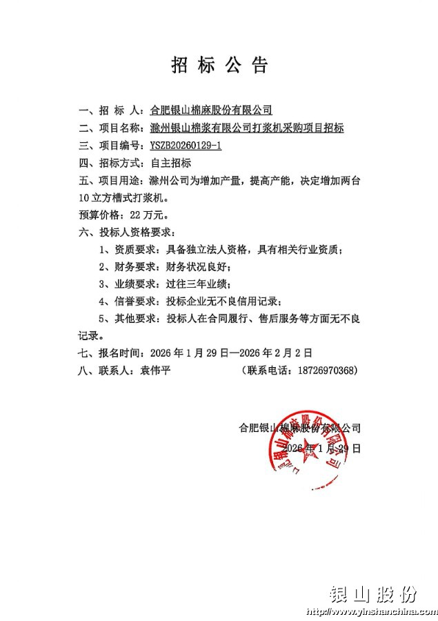 滁州银山棉浆有限公司打浆机采购项目招标